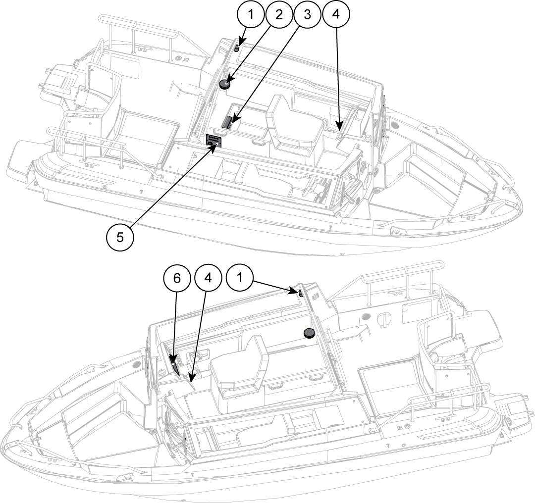 2 | Ceiling light | 5 | Main switch and fuse panel |