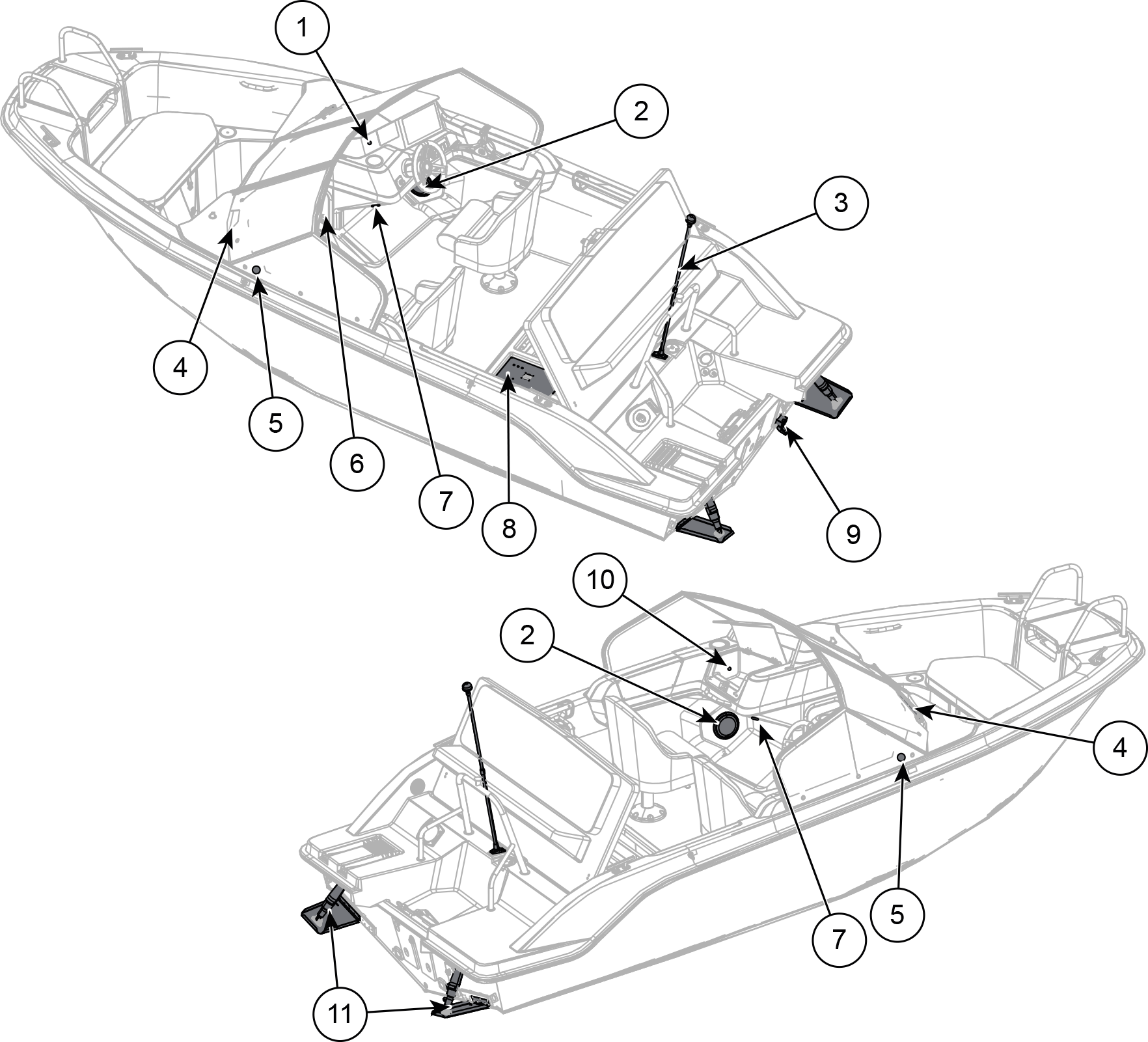 5 | Navigation light | 11 | Trim tabs |