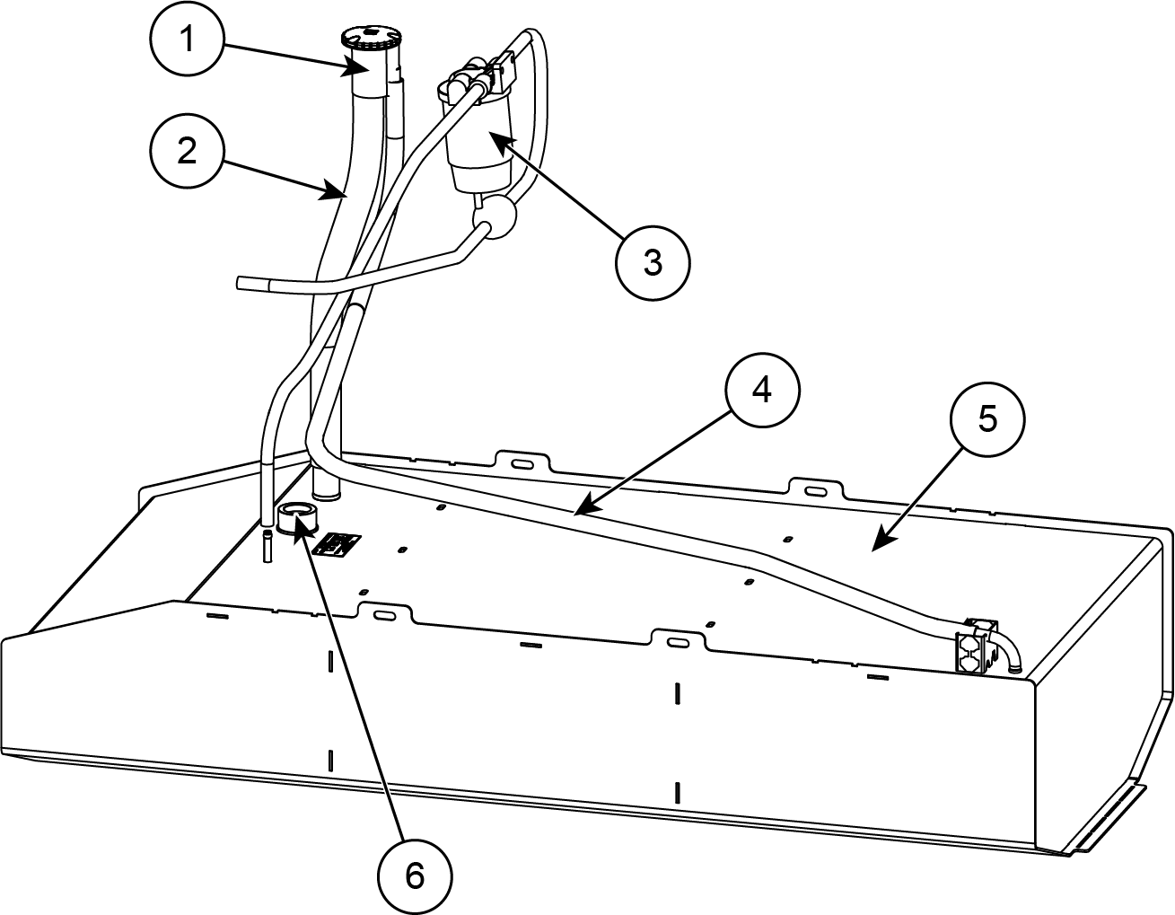 3 | Fuel filter | 6 | Fuel sensor |