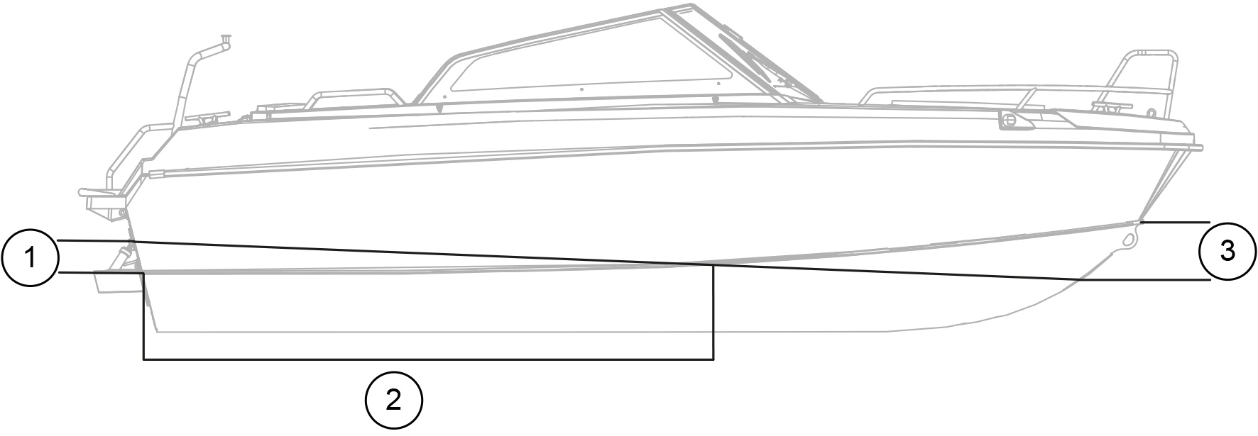 | 2 | In chine line: from stern | 3100 mm |