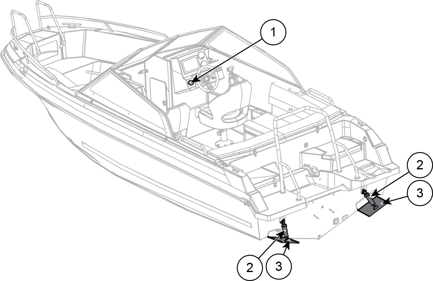 1 | Trim tabs control joystick | 3 | Trim tab |