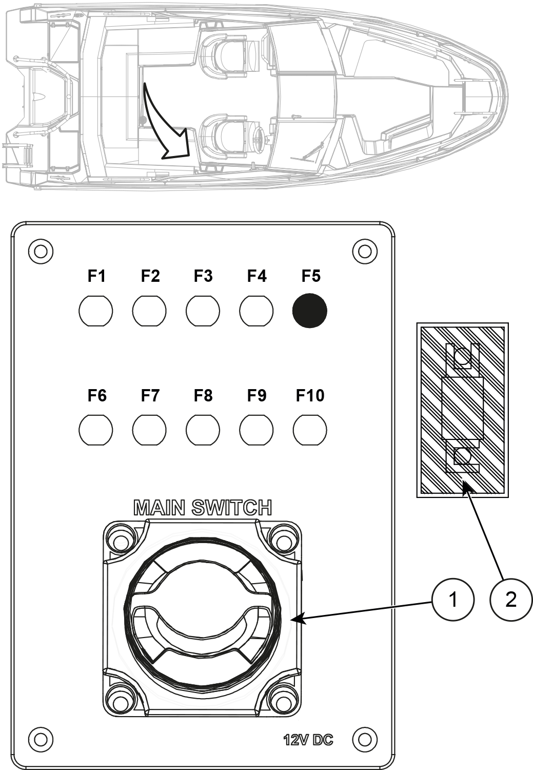 Figure 1. Cross 62 V MAX main switch and fuse panel