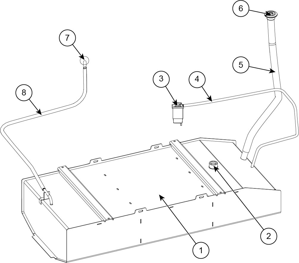 2 | Fuel sensor | 6 | Fuel filler cap |